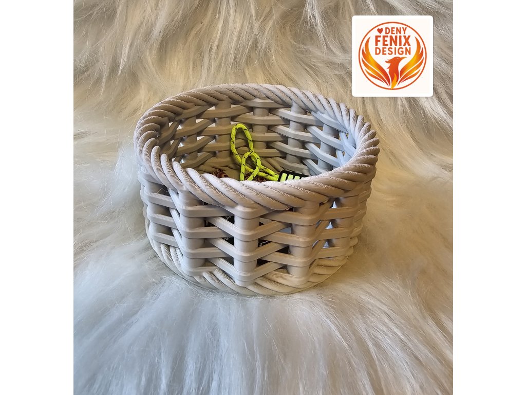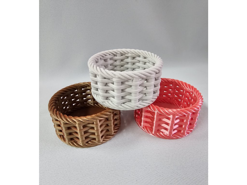 Košíček je vyroben pomocí technologie 3D tisku z kvalitního PLA filamentu, je lehký, pevný a příjemný na dotek. Spirálový „pletený“ design připomíná ručně motaný košík a krásně doplní každý interiér.