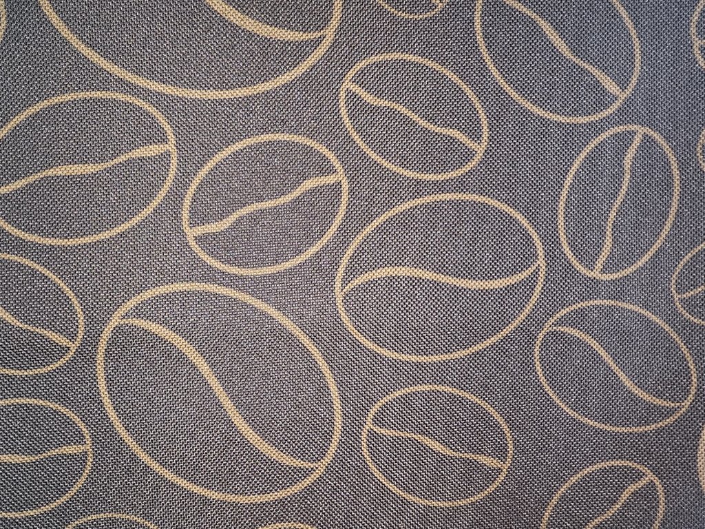 Tato krásná kočárkovina - batohovina se vzorem kávových zrn je vhodná na šití tašek, batohů, pelíšků pro domácí mazlíčky,pouzder na kosmetiku nebo psací potřeby.