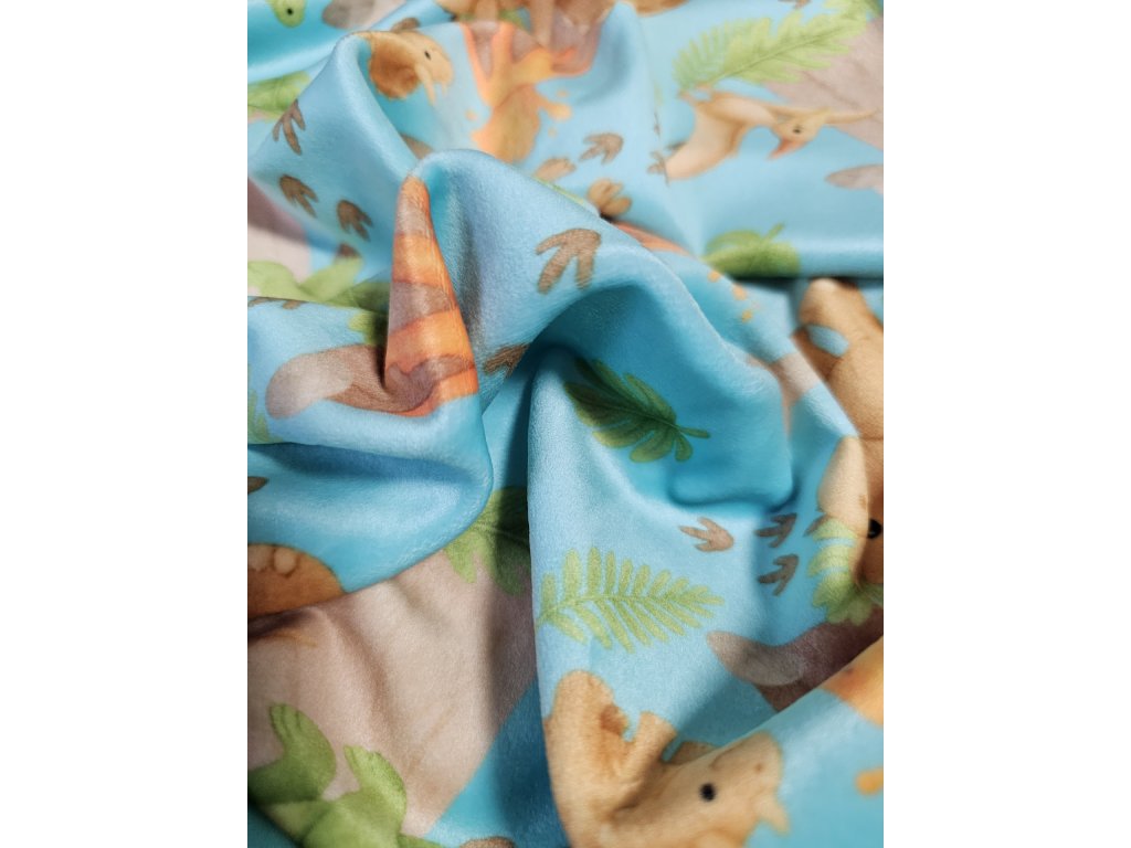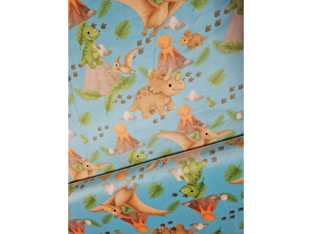 Když se dinosauři rozhodnou přeskočit do světa hebkého plyše, výsledek stojí za to! Autorský vzor s dinosaury a sopkou jsem nakreslila na přání svých kluků – a teď může zahřát i vaše malé objevitele. Microplyš je jemný, měkký a hřejivý, přitom pružný a skvěle se hodí na dětské oblečení i podšívky.