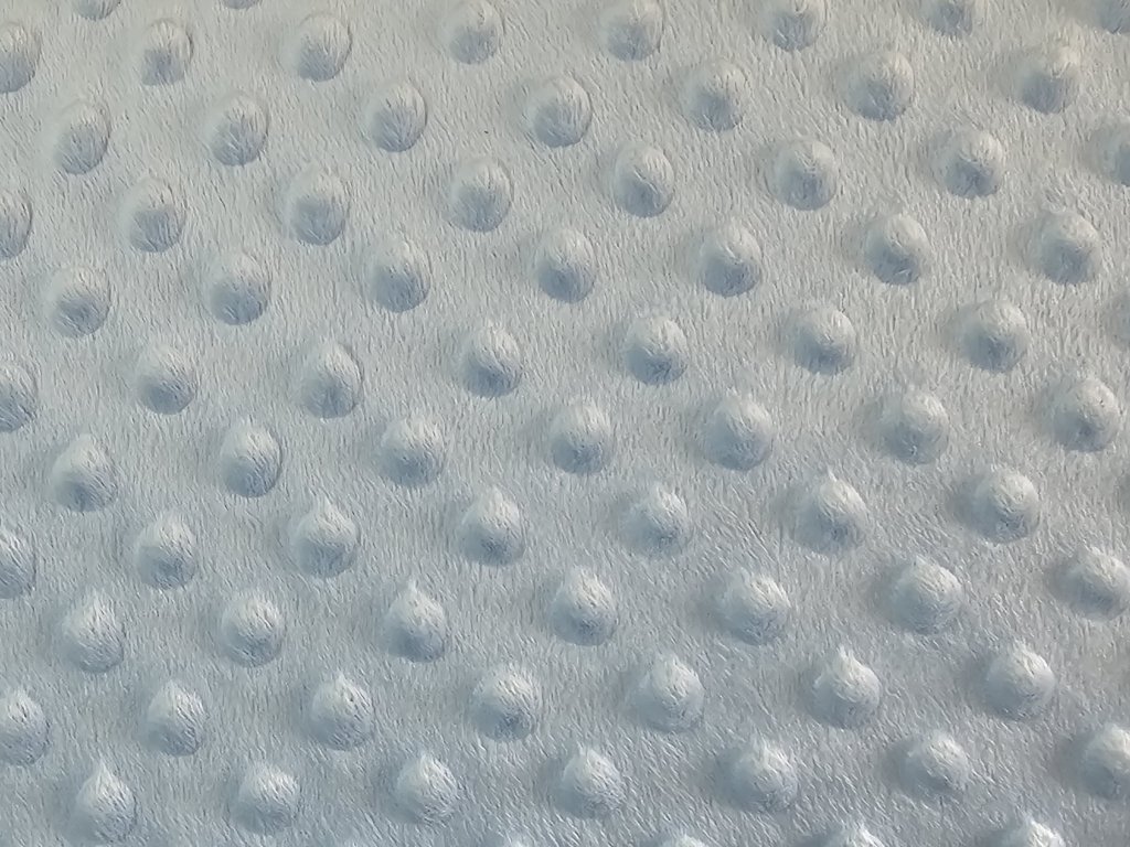 Na lícové straně jsou 3D puntíky. Rub látky je hladký, bez plyše. Minky využijete všude tam, kde vyžadujete měkký materiál - na spodní strany dek, do zavinovaček, na čepice, nákrčníky nebo župany.