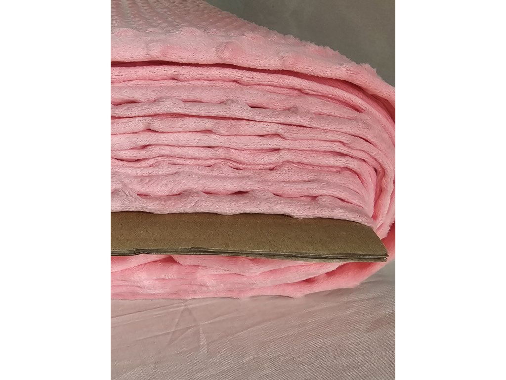 Na lícové straně jsou 3D puntíky. Rub látky je hladký, bez plyše. Minky využijete všude tam, kde vyžadujete měkký materiál - na spodní strany dek, do zavinovaček, na čepice, nákrčníky nebo župany.