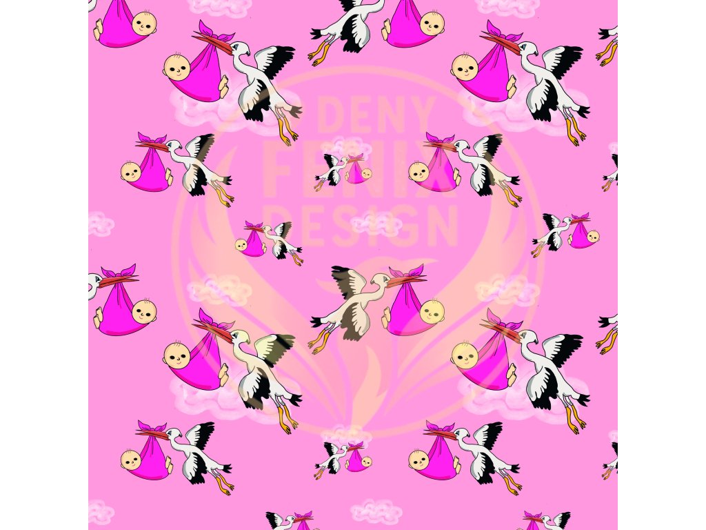 Jemný bavlněný mušelín se vzorem čápů nesoucích miminko. Měkký, prodyšný a ideální na šití výbavičky pro miminko.