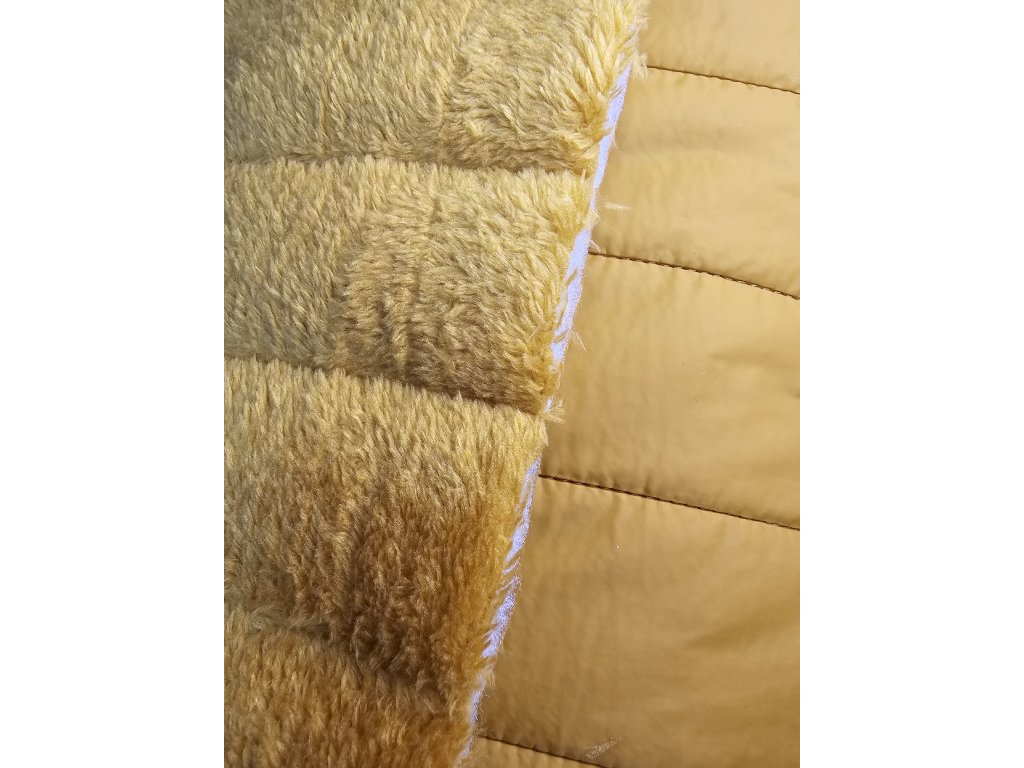 Hřejivý zimní prošev s jemným kožíškem na rubu, ideální na kabáty, vesty, fusaky i deky. Pevně prošitý „sendvič“, který krásně drží tvar, zahřeje a přitom se s ním výborně pracuje. Šíře 145 cm, gramáž cca 310 g/m².