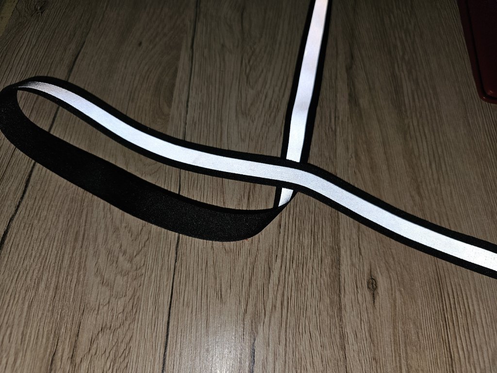 Samoreflexní pásku můžeme našít na popruh..Ozdobit jím bundu, batoh..