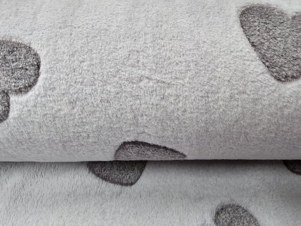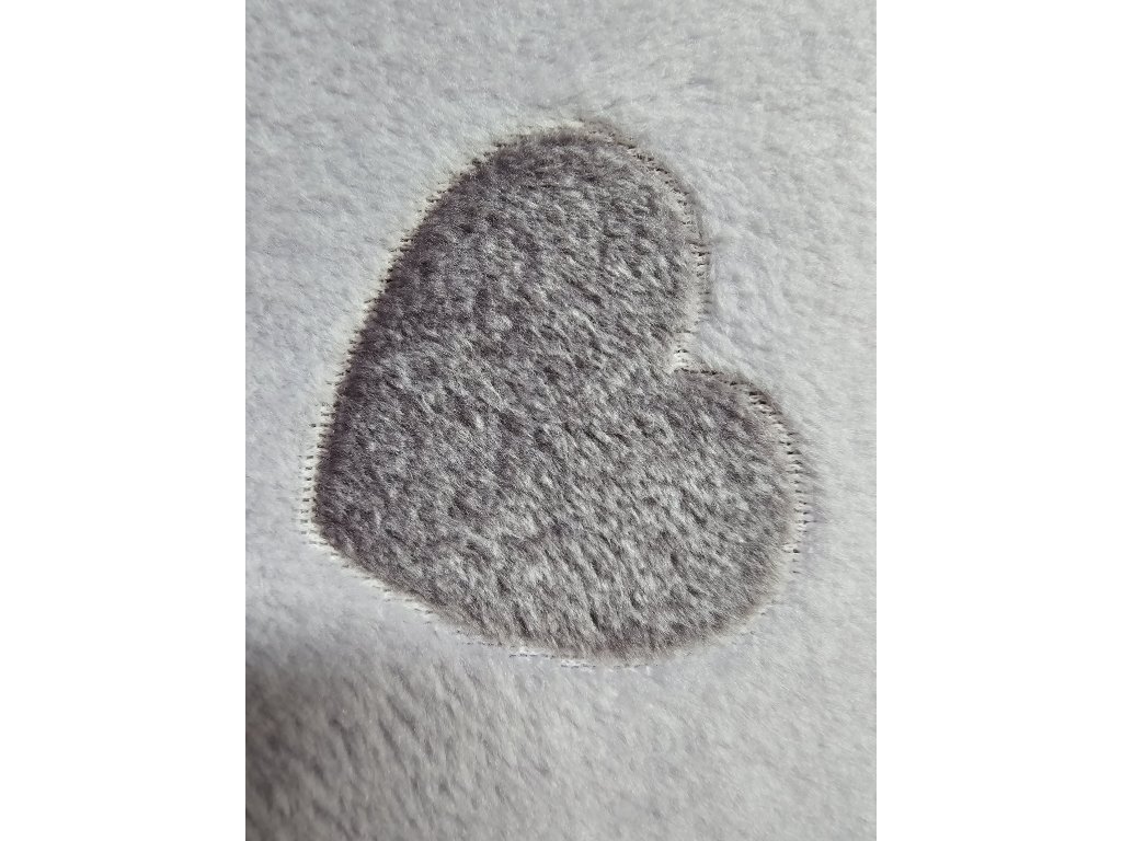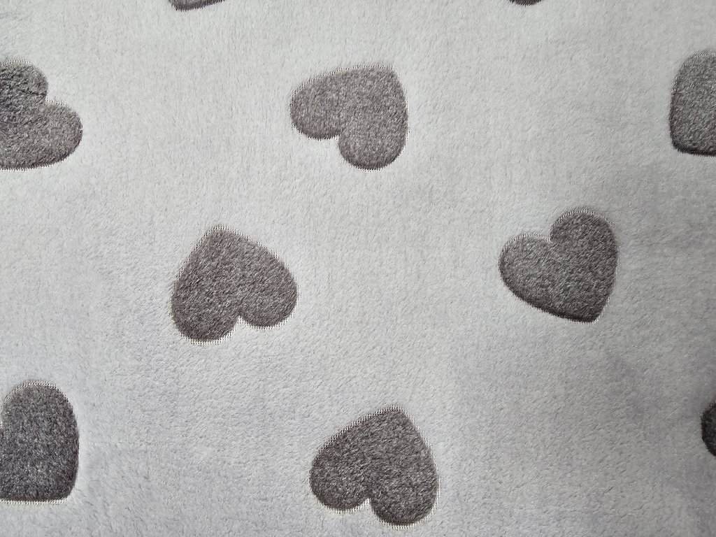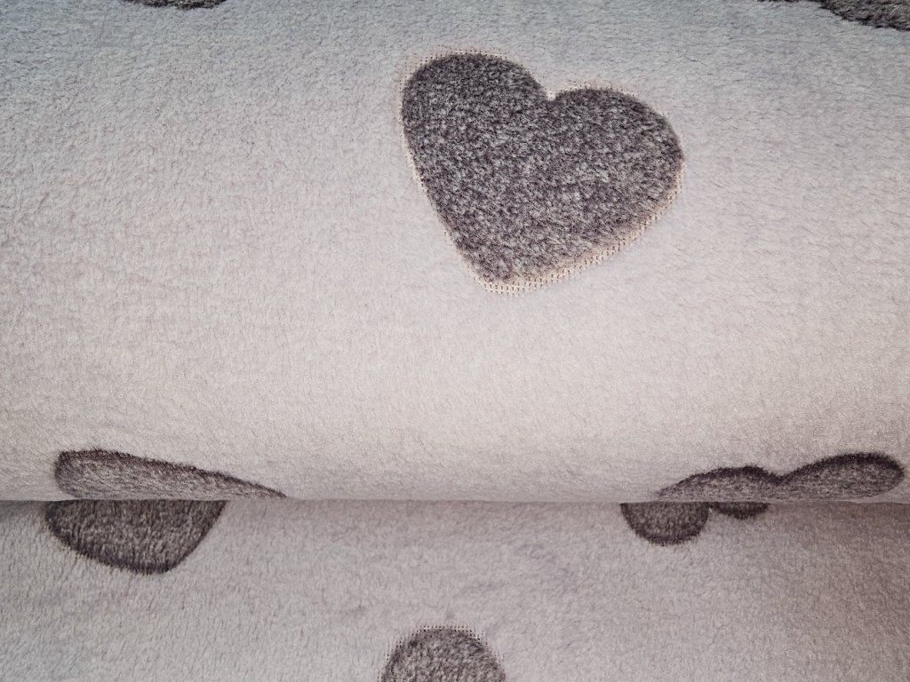 Jemný chlupatý wellsoft fleece s žakárovým vzorem srdce. Barva velmi světle fialová -lila.